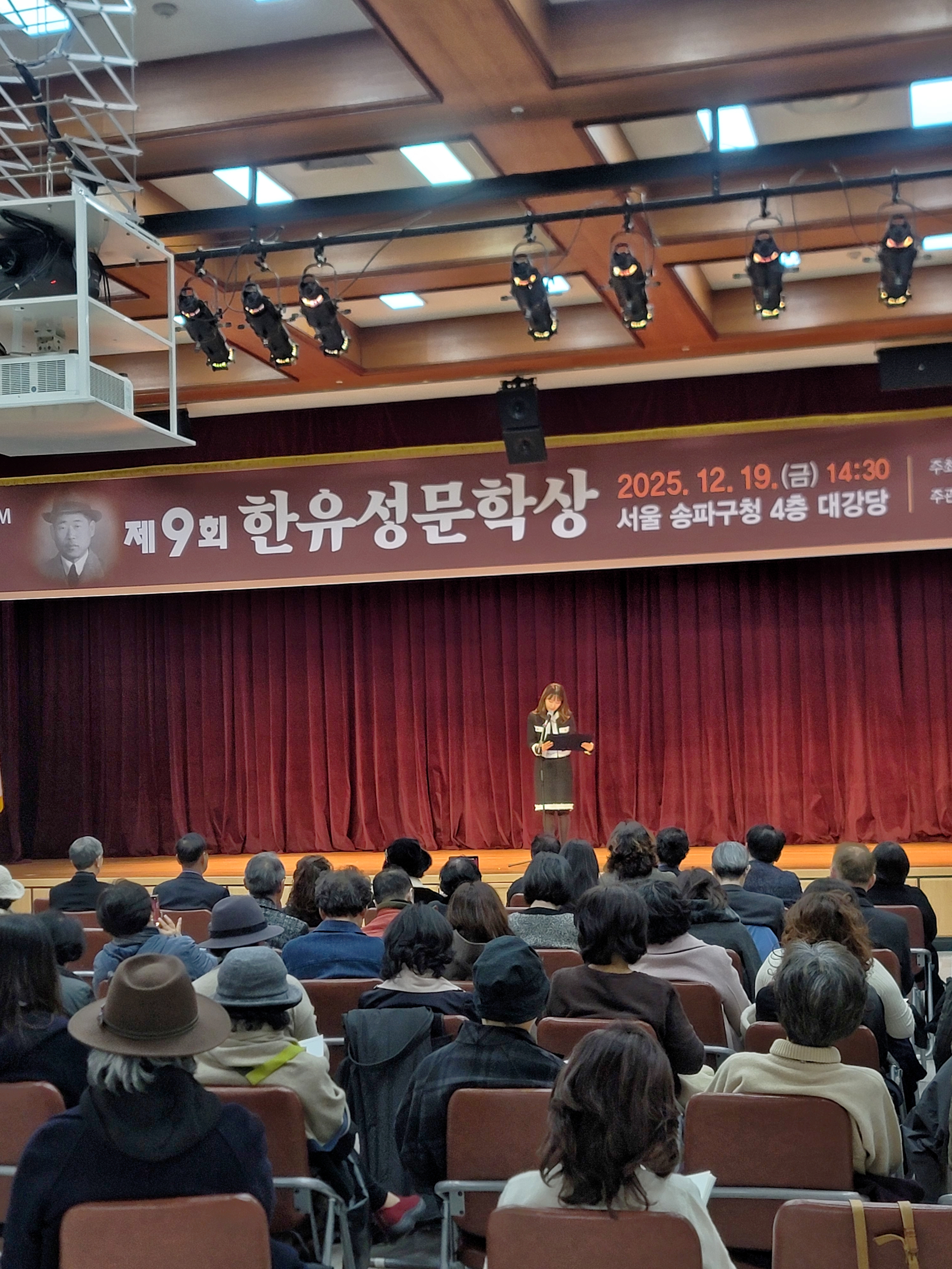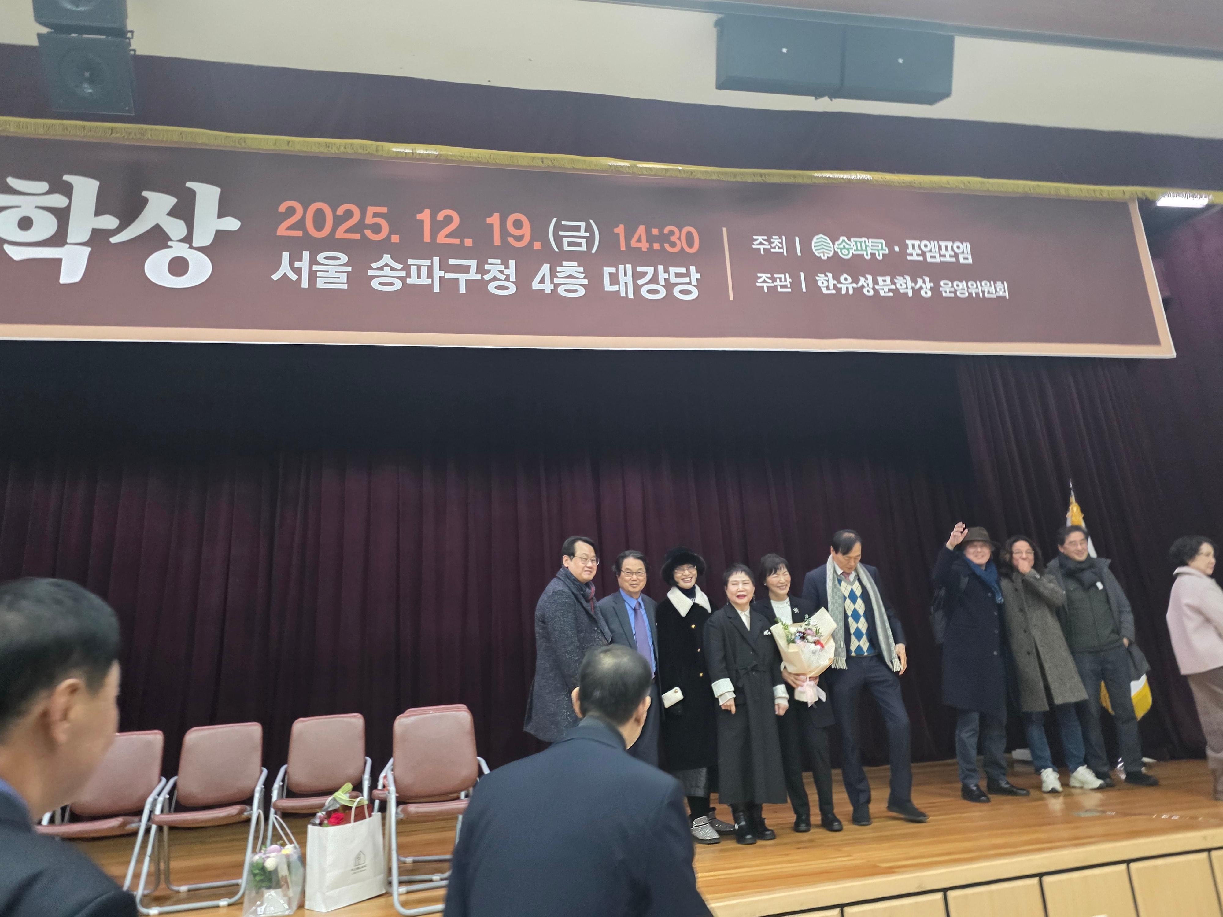 제9회 한유성 문학상 시상식/2025년 12월 19일/송파구청 대강당